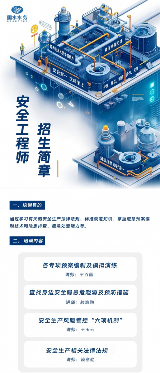 通過(guò)此次行動(dòng),國(guó)水水務(wù)將培育首批8名安全工程師,內(nèi)部安全管理制度優(yōu)化升級(jí) 3 項(xiàng),今后仍將持續(xù)深入開(kāi)展安全技術(shù)專(zhuān)業(yè)領(lǐng)域基礎(chǔ)培訓(xùn),引進(jìn)具備應(yīng)急管理、應(yīng)急技術(shù)與管理、安全工程等專(zhuān)業(yè)人才,推進(jìn)安全工程師執(zhí)業(yè)資格注冊(cè)制,與應(yīng)急管理行業(yè)接軌,真正實(shí)現(xiàn) “人才專(zhuān)業(yè)、管理規(guī)范、實(shí)戰(zhàn)過(guò)硬”—— 這既是國(guó)水水務(wù)自身的安全底氣,更是服務(wù)客戶(hù)的 “經(jīng)驗(yàn)樣本”。
